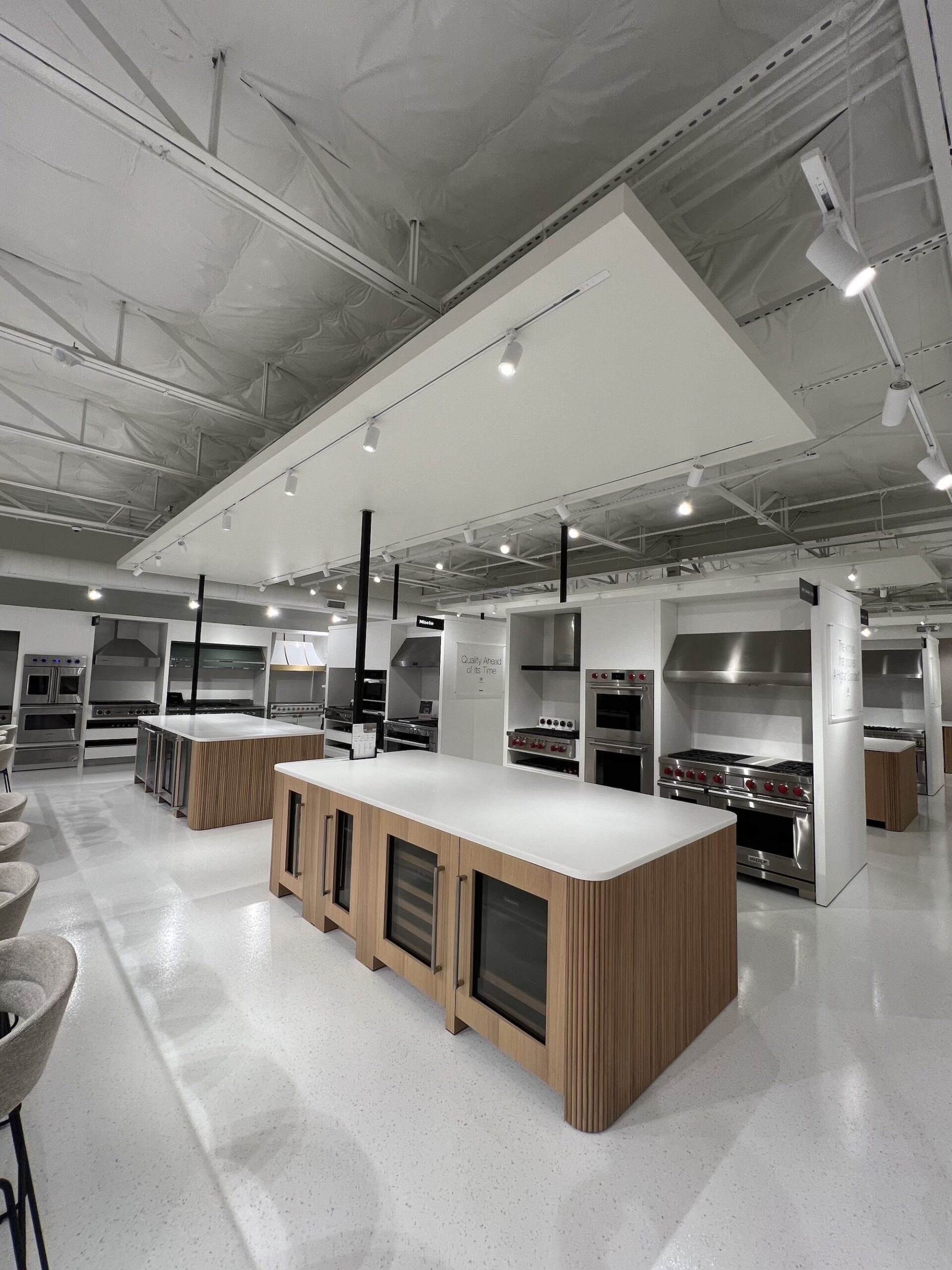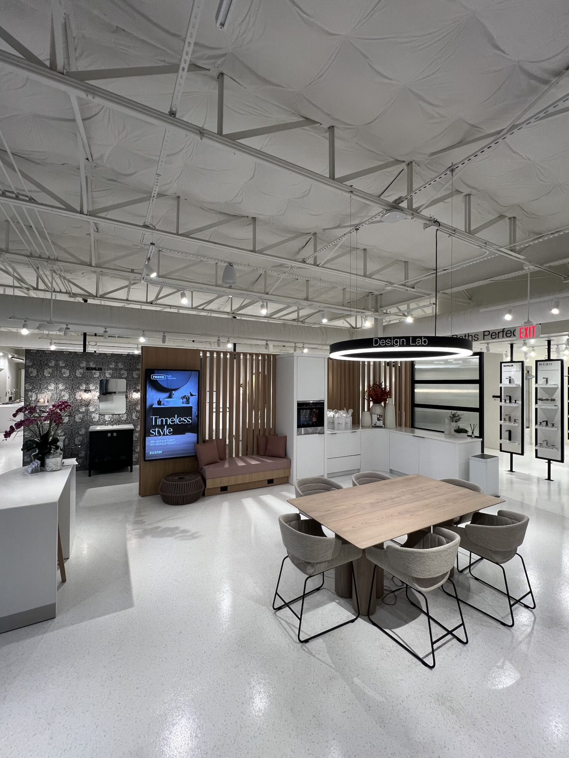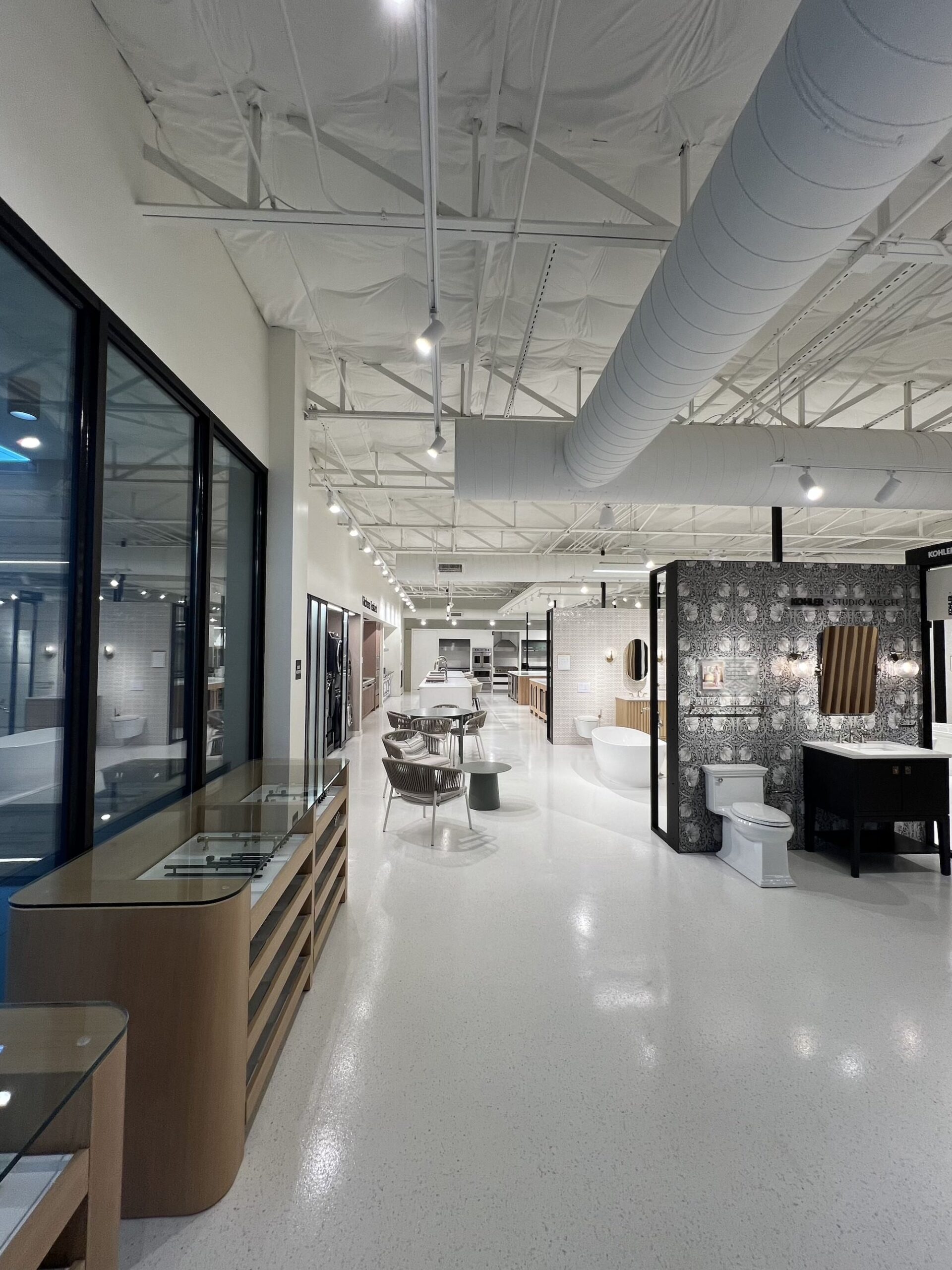 Interior Upgrades: Full showroom renovations with premium finishes, upgraded lighting, and new epoxy flooring. Millwork and product displays were supplied by a third-party partner, and our team integrated the finishes as needed to align with the overall design intent. Curated vignettes showcasing kitchens, baths, patio displays and laundry layouts. Live fixture installations including working sinks, faucets, kitchens and showers for customer interaction. Extensive electrical, mechanical, and plumbing rework to support new layouts and displays. Back-of-house enhancements including storage, staff facilities, and operational infrastructure. ADA upgrades ensuring accessibility and customer comfort.