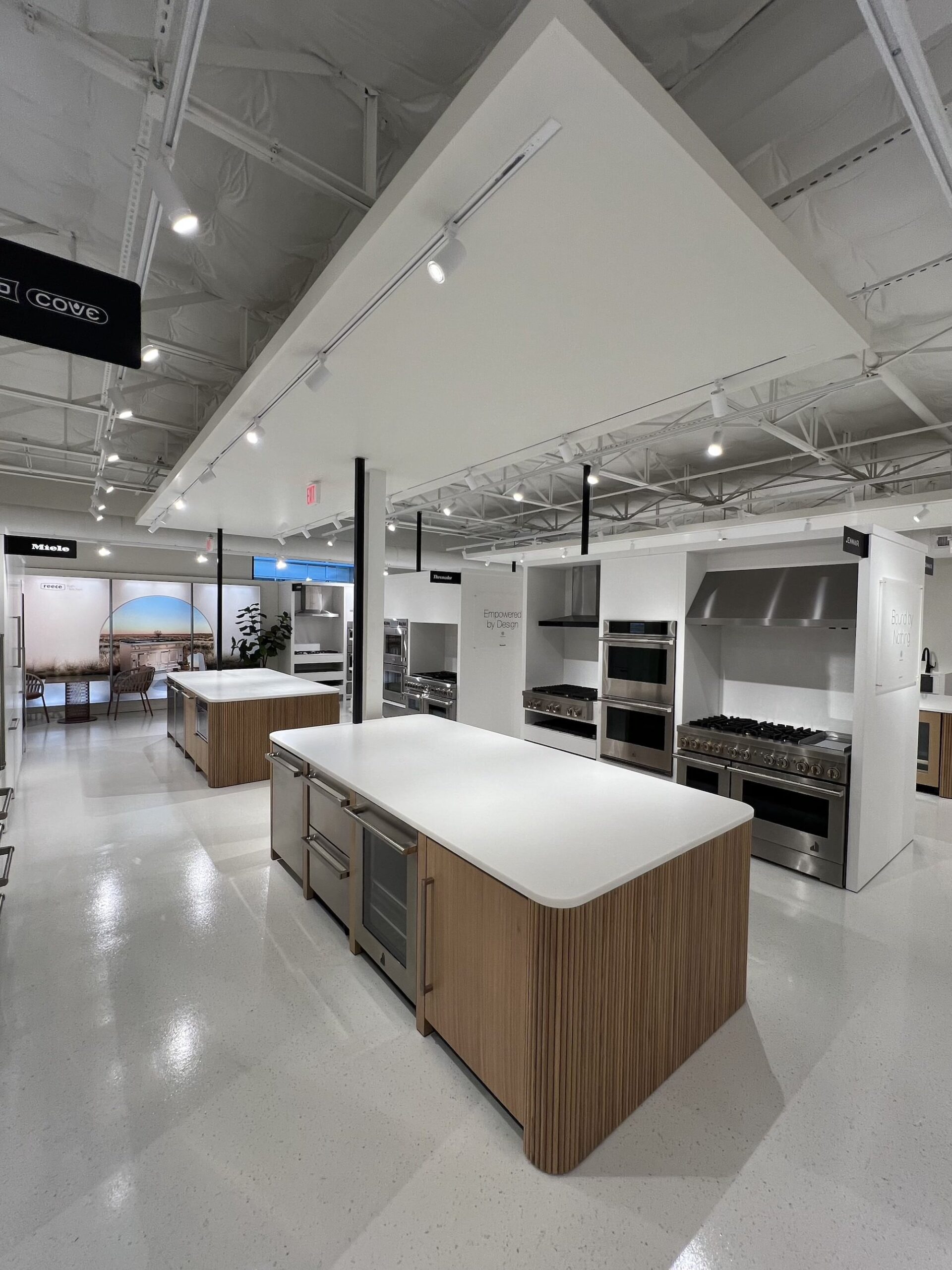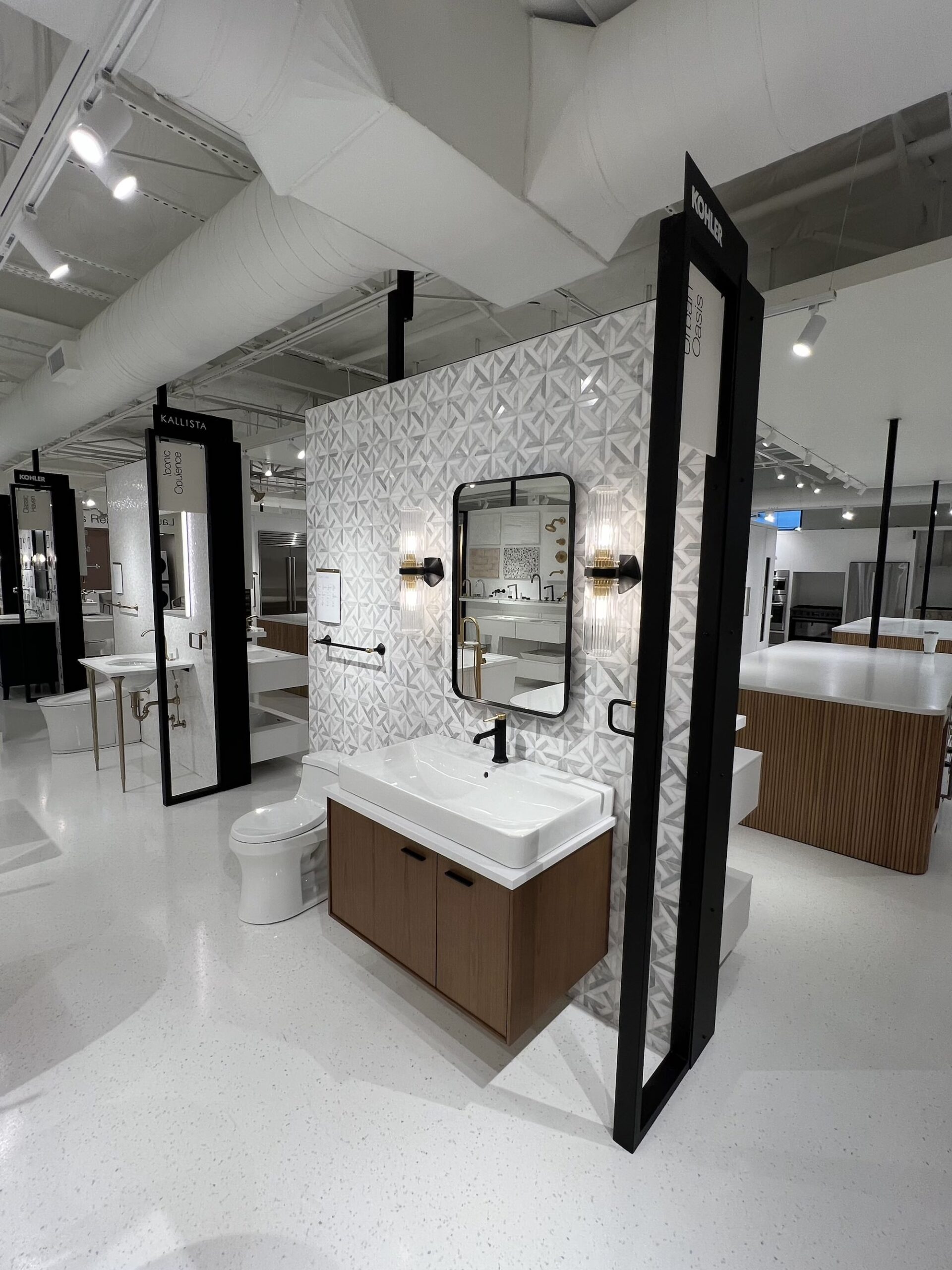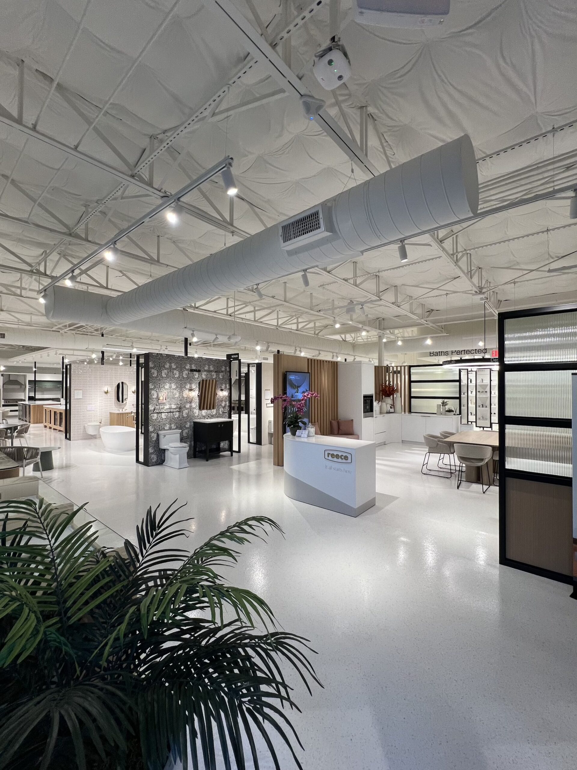 Interior Upgrades: Full showroom renovations with premium finishes, upgraded lighting, and new epoxy flooring. Millwork and product displays were supplied by a third-party partner, and our team integrated the finishes as needed to align with the overall design intent. Curated vignettes showcasing kitchens, baths, patio displays and laundry layouts. Live fixture installations including working sinks, faucets, kitchens and showers for customer interaction. Extensive electrical, mechanical, and plumbing rework to support new layouts and displays. Back-of-house enhancements including storage, staff facilities, and operational infrastructure. ADA upgrades ensuring accessibility and customer comfort.